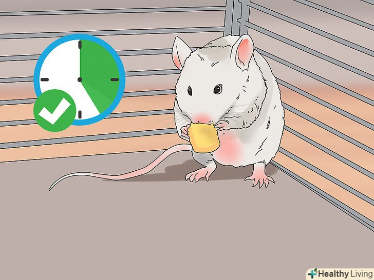 Намагайтеся годувати мишей у відповідний час. миші-нічні тварини, тому найкраще годувати їх перед настанням ночі. До того ж, не забувайте наливати їм достатньо води протягом дня. [9]- Обов'язково встановіть собі оповіщення або будильник, щоб не забути. Не можна пропускати час годування, тому що мишкам дуже потрібна їжа.
