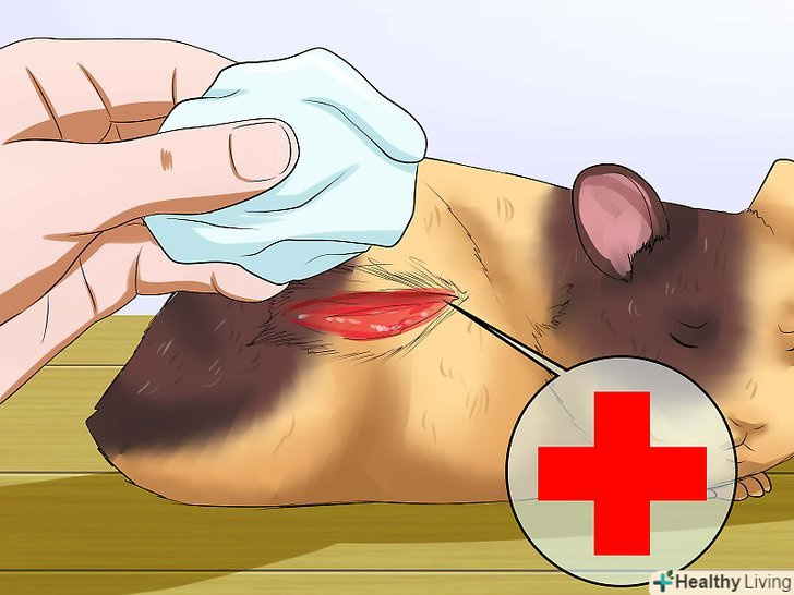 - У деяких випадках в результаті травми у хом'яка утворюються виразки на шкірі. Такі пошкодження виглядають як відкриті, запалені рани, нерідко супроводжуються кровотечею. [12] якщо кровотеча з таких ран не дуже сильне, ви можете вилікувати їх в домашніх умовах.