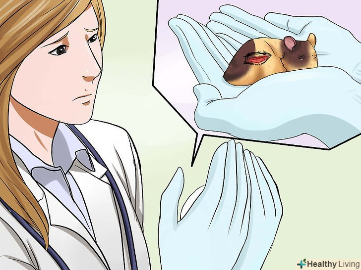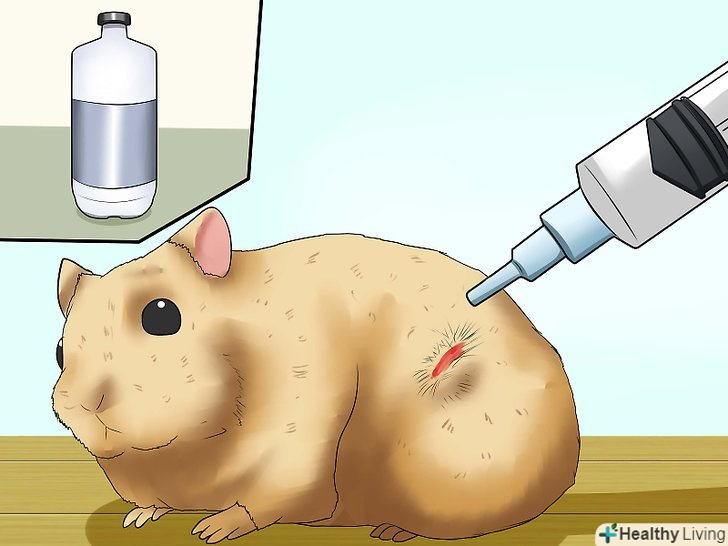 Лікування травми. Ветеринар зробить все необхідне для лікування травми, отриманої вашим вихованцем. Наприклад, якщо у хом'яка розвинувся абсцес на місці інфікованої рани, лікар розкриє його і очистить від гною і некротизованих тканин. [23] якщо хом'як не міг пити воду через травму і у нього настало зневоднення організму, ветеринар зробить підшкірну ін'єкцію спеціального розчину, який допоможе відновити водно-сольовий баланс організму тварини.- Якщо у вашого вихованця серйозна рана, ветеринар накладе на неї шви. [24]