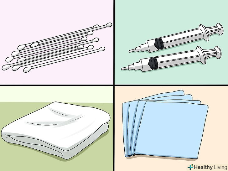 Зберіть необхідні матеріали для надання допомоги. Якщо ви визначили, що травма не становить серйозної загрози для життя хом'яка, можна вилікувати тварину своїми силами. Для початку зберіть всі необхідні для лікування матеріали, в тому числі чисті рушники, ватяні палички, кілька шприців об'ємом 10 мл (без голок) і стерильні марлеві серветки розміром 5х5 див. Крім того, вам буде потрібно флакон стерильного фізіологічного розчину, розчин для обробки ран (можна купити Бетадин, але підійде і звичайний розчин йоду) і мазь з антибіотиком. [5]- Ви можете купити всі необхідні матеріали в найближчій аптеці.