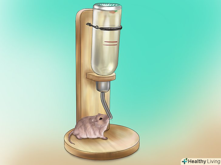 Надайте Піщанці поїлку з водою. Піщанкам необхідно мати постійний доступ до свіжої чистої води. Використовуйте підвісну поїлку, щоб забезпечити вихованця водою. Слідкуйте за тим, щоб носик поїлки не торкався підстилки, інакше вода буде підтікати.- Щодня перевіряйте стан поїлки і переконуйтеся в її належній роботі.