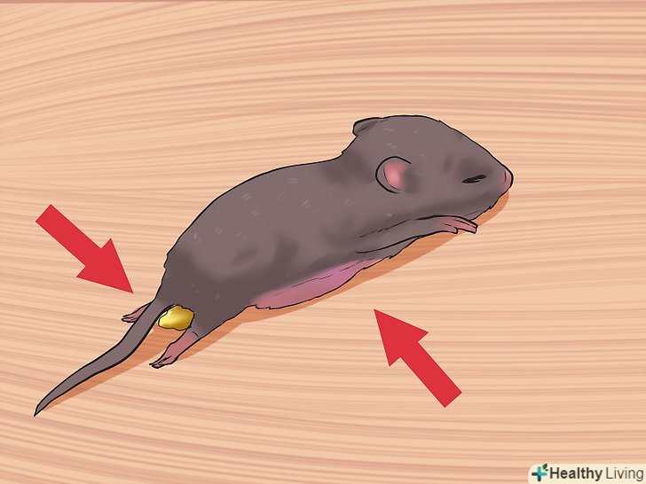Слідкуйте за появою у мишенят симптомів діареї і зневоднення. навіть якщо біологічна або прийомна мати успішно піклується про новонароджених мишей, при вирощуванні потомства нерідко можна зіткнутися з такими проблемами, як діарея і зневоднення у мишенят. [4] зневоднення зазвичай супроводжує діарею, і при відсутності лікування дитинчата можуть загинути.- Ознаками діареї є надутий живіт, млявість і жовтуваті виділення з анального отвору. [5]