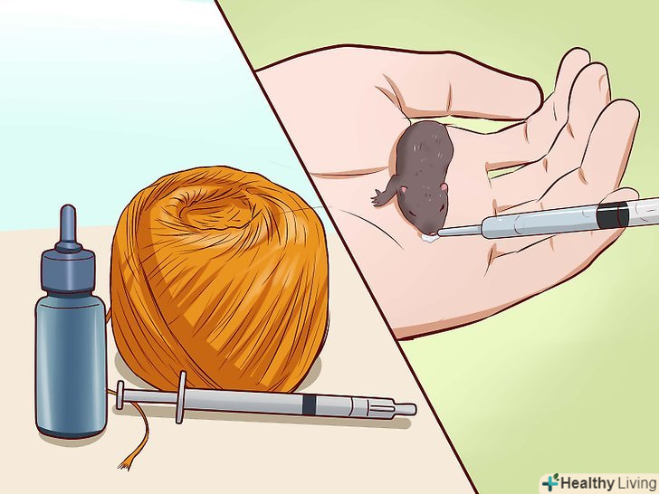 Використовуйте для годування невеликий шприц, спеціальну маленьку пляшечку для вигодовування дрібних гризунів або добре вбирає тонку мотузку. також можна використовувати очну піпетку. Якщо ви взяли шприц або пляшечку, наповніть їх сумішшю, щоб підготуватися до годування. Якщо Ви користуєтеся мотузкою, просто намочіть її сумішшю, щоб з неї капало.