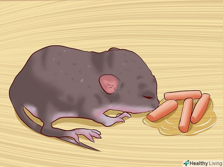 Почніть переводити мишенят на тверду їжу, коли їм виповниться три-чотири тижні. [10] у перші кілька днів пропонуйте мишеням невелику кількість розмоченого гранульованого корму для молодих мишей. Для підготовки гранул просто збризніть їх водою і покладіть в легкодоступне для мишенят місце. [11]- Незабаром мишенята почнуть пробувати на зуб розмоклі крихти.
