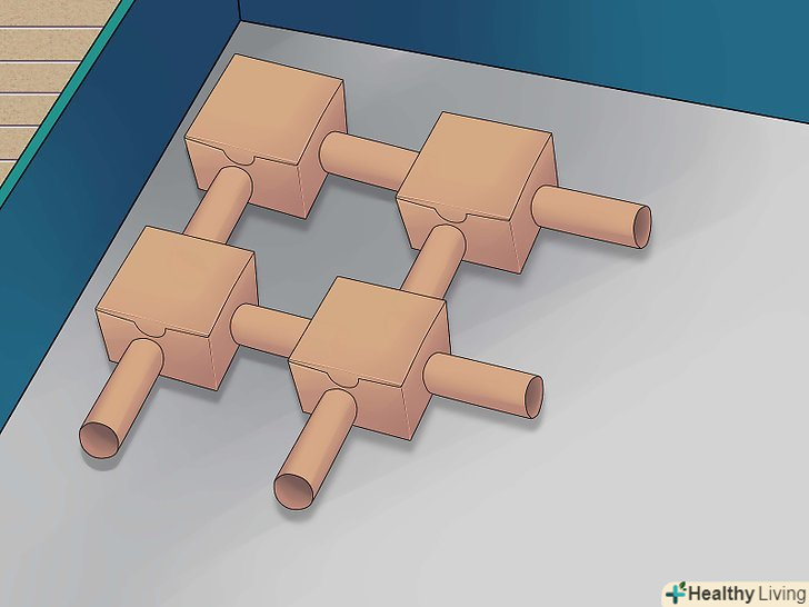 Закріпіть трубки так, щоб вони дивилися в різні боки. так ви додасте трубкам форму лабіринту. Чим більше трубок ви з'єднаєте, тим цікавіше вийде лабіринт.- Якщо ви вирішили зробити лабіринт за межами клітини, завжди спостерігайте за хом'яком, поки він там лазить щоб він не втік і не поранився. [7]