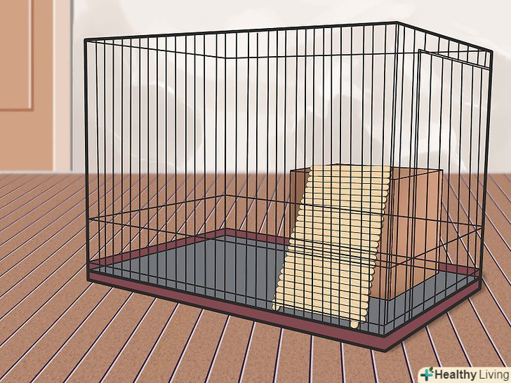 Помістіть сходи в клітку. її можна підвісити або нахилити — все залежить від вашої фантазії.- Покладіть сходи на дно клітки так, щоб вона вела до наступної іграшки.