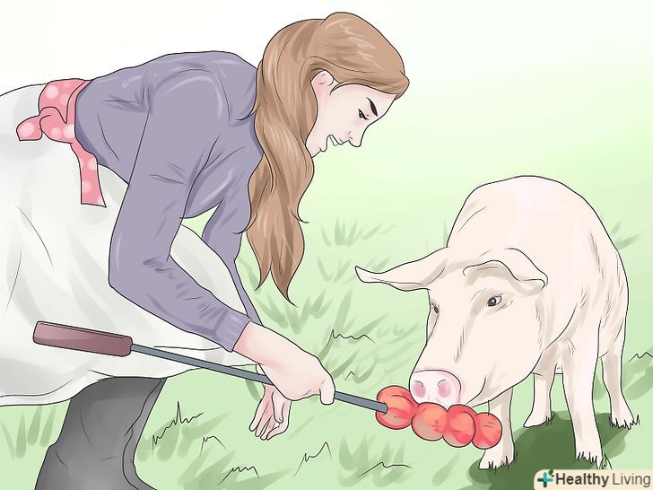 Давайте своїм свиням трохи помиїв. Свиней іноді називають ходячими смітниками-і це досить точна формулювання. Однак нехай в якості основного блюда у них буде корм, а в якості десерту – трохи помиїв. Свиням можна давати фрукти, овочі, м'ясні недоїдки, садові відходи і навіть протухлі яйця. Головне, переконайтеся, що вони не їдять виключно відходи. [6]- Пам'ятайте також, що те, що отруйне для людей (деякі рослини і ягоди), також отруйне і для свиней. Вам слід уникати годувати свиней сирою картоплею або сирим м'ясом, оскільки і те, і інше може стати причиною отруєння, а також містить в собі велику кількість шкідливих бактерій.