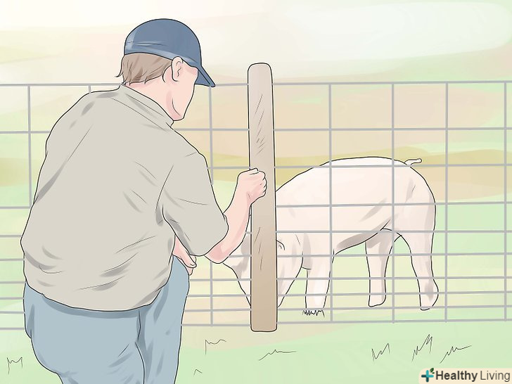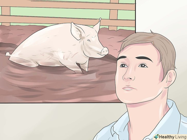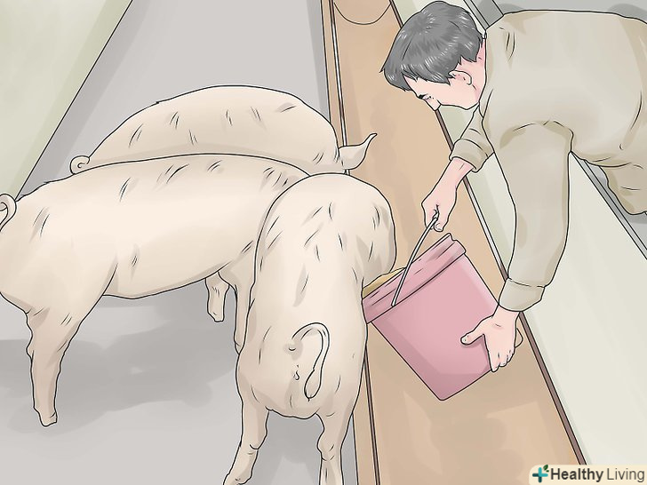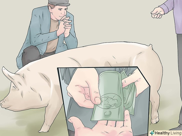 Купуйте свиней. незалежно від того, вирощуєте ви свиней на м'ясо або в якості домашніх тварин, вам слід вибирати здорових свиней у хорошого виробника. Вам слід зосередити свою увагу на місцевих свинофермах, що мають поросят на продаж, якщо тільки ви не хочете витратити свої гроші даремно. Вибираючи поросят, не беріть тих, що дряпаються або кашляють. Якщо ви помітите, що приблизно 20% поросят на фермі хворі, краще пошукати інше місце для покупки. [5]- Пам'ятайте, що якщо ви купуєте поросят на ярмарку, де представлені свині різних виробників, свині там знаходяться в неабиякому стресі. Через це вони також більш схильні до різних захворювань.