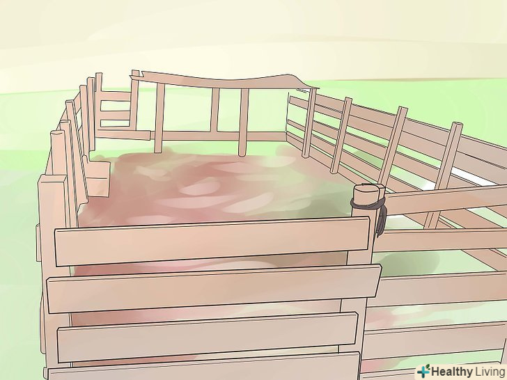 Поставте навколо свинарника міцну дротяну огорожу. використовуйте плетену огорожу, тільки якщо вона досить міцна, і прокладіть її по низу дошками, щоб запобігти підкоп свиней. Кращий спосіб побудувати огорожу-це відзначити всю площу, заплановану під свинарник, і потім звести навколо міцний дерев'яний паркан. Коли паркан готовий, прикріпіть до його внутрішній стороні сітку рабицю, щоб свині натикалися на неї і вже не поривалися далі. [2]- Хорошим варіантом для свиней також може стати переносна електрична огорожа, яку можна використовувати для випасу на інших частинах ферми, а також для того, щоб збирати стадо як всередині, так і зовні свинарника.