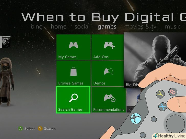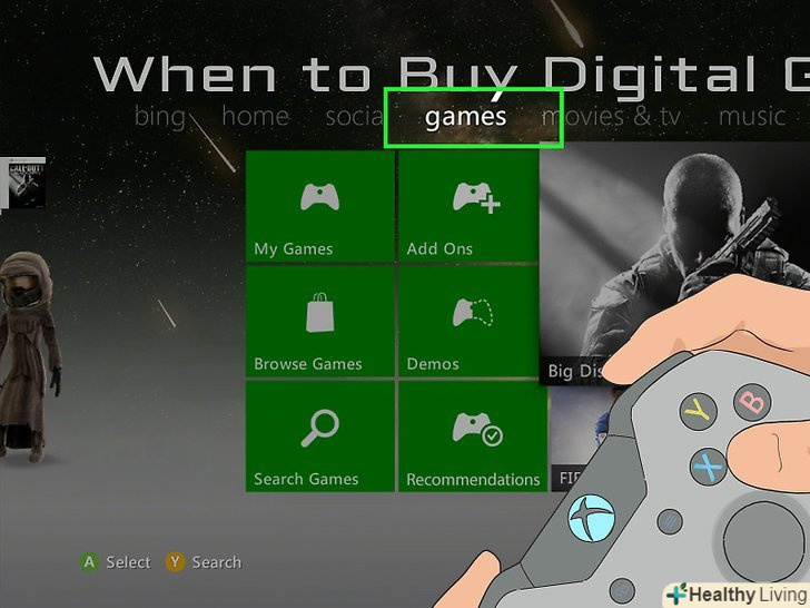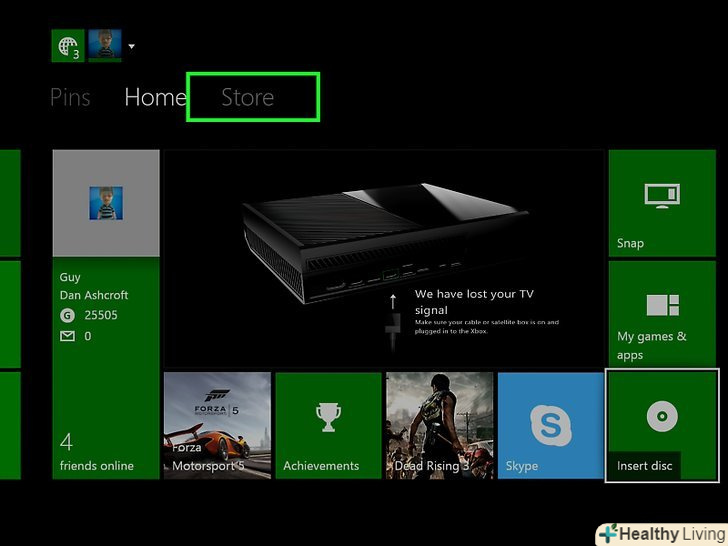 Переконайтеся, що ви увійшли в потрібний аккаунт.натисніть кнопку «Guide», а потім подивіться на ім'я у верхньому лівому куті екрана. Необхідно увійти в обліковий запис, з якої Ви збираєтеся купити гру.- Якщо ви увійшли не в той обліковий запис, перейдіть вгору до значка облікового запису, натисніть «A», а потім виберіть потрібний обліковий запис і знову натисніть« «A».