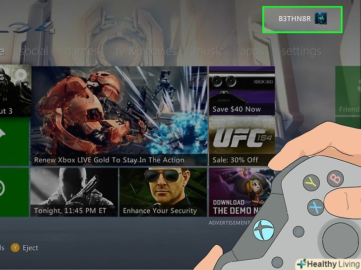 Переконайтеся, що ви увійшли в потрібний аккаунт.натисніть кнопку «Guide», а потім подивіться на значок профілю у верхній частині екрана. Якщо ви перебуваєте в потрібному акаунті, натисніть кнопку «Guide» ще раз, щоб закрити вікно.- Якщо ви увійшли не в той обліковий запис, натисніть "X«, виберіть» Так«, натисніть» A«, а потім натисніть» X" і виберіть потрібний аккаунт.