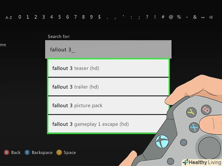 Виберіть назву гри і натиснітьA.прокрутіть вниз, щоб вибрати назву, яку ви ввели в рядку пошуку. Коли назва буде вибрано, натисніть "A", щоб запустити пошук гри.