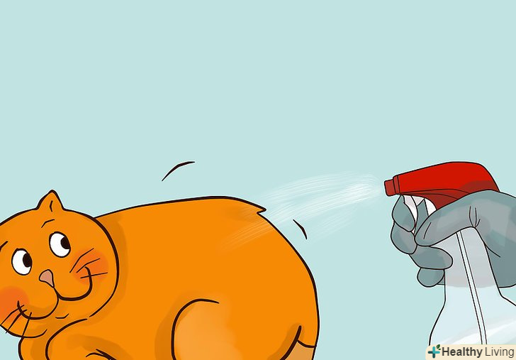 Бризніть на вашого вихованця. будьте обережні, щоб бризки не потрапили в очі і в чутливі області, такі як ніс і рот.