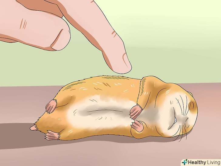 Помацайте, чи б'ється у хом'ячка серце. якщо ви не можете розгледіти, чи дихає хом'ячок, спробуйте відчути серцебиття. Воно може істотно сповільнитися, але все ж має бути присутнім. У хом'ячка в сплячці можна відчути всього чотири удари в хвилину або один удар через кожні 15 секунд. [5]- Вам буде непросто намацати сердечко хом'ячка через маленьких розмірів тварини. Для цього покладіть великий і вказівний пальці однієї руки по обидві сторони грудної клітини хом'ячка (за ліктями). Трохи натисніть, але не дуже сильно. Трохи почекайте. Через якийсь час ви можете відчути легкий поштовх у кінчиків пальців.