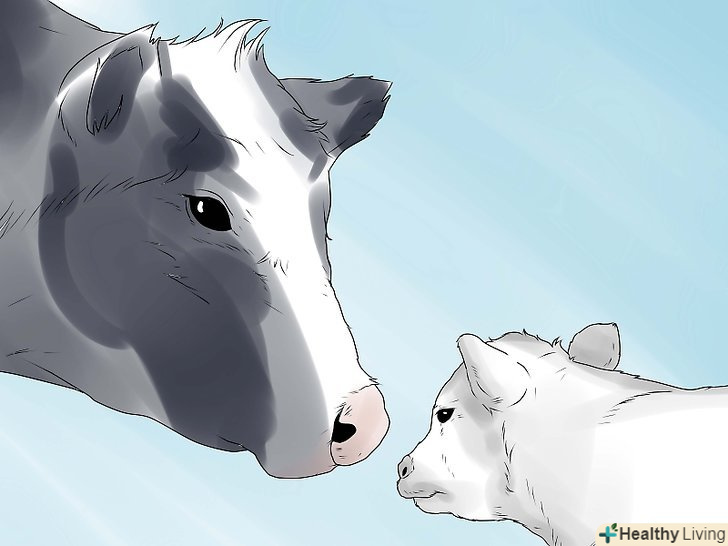 Відібрання від вимені : Потомство потребує молока матері перші 3 місяці свого життя. Але телята, вирощувані на молочних фермах, як правило, віднімаються від вимені в перші день-два після народження. Вам немає необхідності чинити так зі своєю коровою, але почніть потроху зменшувати залежність теляти від материнського молока до моменту, коли йому або їй виповниться місяць.- Ви можете в цей час почати годувати теляти так, щоб йому доводилося підповзати під черево матері, спонукаючи його почати їсти корм для телят, годуючи його в той час, коли ви доїте корову, і дозволяючи йому смоктати тільки тоді, коли ви вже отримали від корови необхідний Вам обсяг молока. Теля повинен бути повністю віднятий від матері до віку 3-4 місяців.