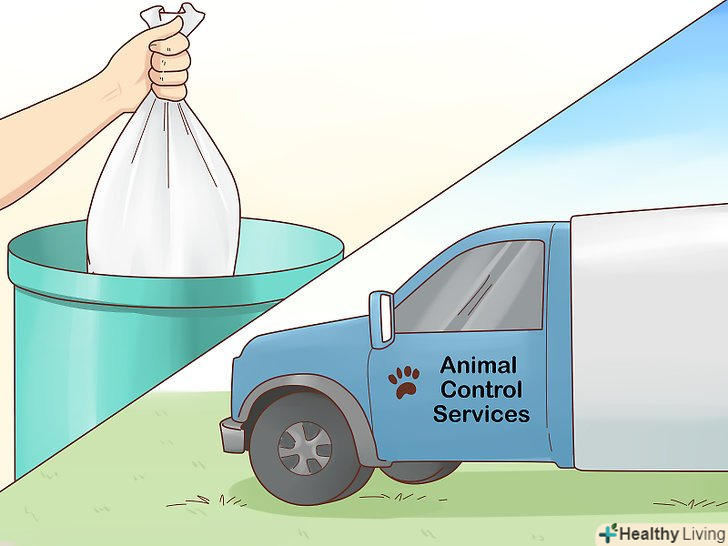 Знайте, що ще можна зробити. якщо ви фізично не можете самі поховати тварину, його можуть прийняти у вас у ветеринарній клініці. Загорніть тіло в стару майку або пластик. Можливо, є й інші варіанти. [18]- З'ясуйте в інтернеті, що прийнято робити з мертвими тваринами у Вашому місті. [19]