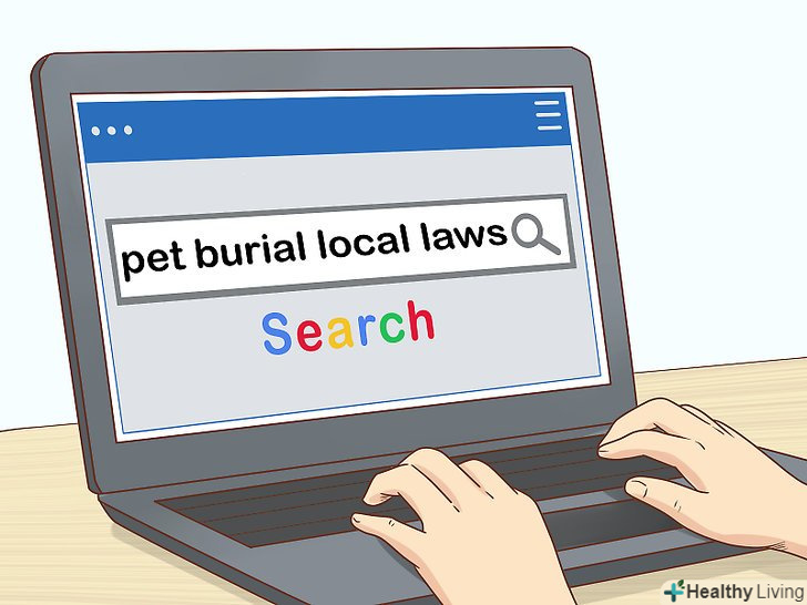 Вивчіть місцеві закони. можливо, вам не дозволять ховати тварину на своїй ділянці. Найчастіше ховати тварин в громадських місцях (наприклад, в парку) не можна, але в багатьох країнах можна робити це на особистій ділянці землі. [8]- Запитайте у ветеринара, як можна ховати тварину. Можна також вивчити інформацію в Інтернеті.