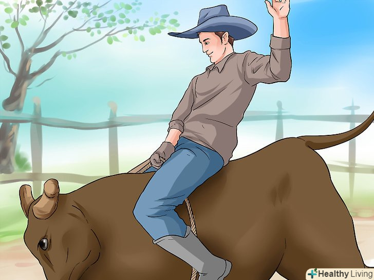 Зміцнюйте свою нижню і верхню частини тіла. для гарної їзди потрібно вміння балансувати і координація, поряд з грубою силою, щоб утриматися на брикаючому бику, який перевершує вас у вазі приблизно на півтонни. Тренування буде включати в себе велику кількість основних вправ для верхньої і центральної частини тіла, а також для ніг, наприклад, присідання.- Виконання вправи «підйом на біцепс» сприятиме розвитку належної сили рухливості у вашій робочій руці.