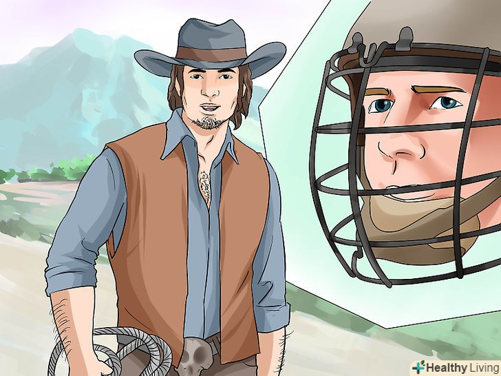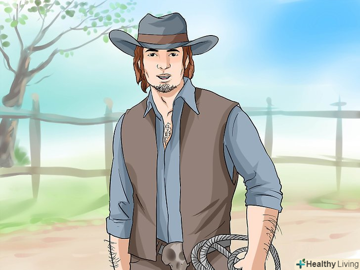 Використовуйте спеціальне обмундирування. хоч для цього і потрібно зовсім небагато спеціального одягу, ви будете відрізнятися (і не будете допущені до участі в більшості змагань), якщо не одягнете спеціальне ковбойське обмундирування. Воно включає в себе джинси, сорочку на ґудзиках, ковбойські чоботи на підборах, незмінно очолюване культової ковбойської капелюхом.- Наїзники завжди використовують захисні шкіряні рукавички і плетену мотузку, яку обертають навколо бика, щоб притримувати його. Вибирайте рукавички досить тонкі, щоб охоплювати щільно, забезпечувати гнучкий контроль, але, в той же час, досить товсті, для забезпечення захисту. Мотузку, як правило, обробляють смолою, що захищає руки разом з рукояткою при нагріванні.