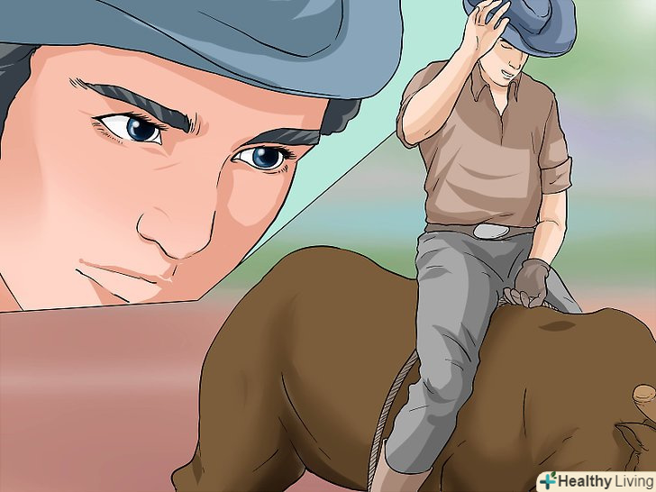 Ви повинні відчувати себе комфортно сидячи верхи без сідла. якщо ви освоїте як сидіти на тварині з відносно рівною спиною, то це вам дуже допоможе в досягненні мети осідлати бика. [3] Навчіться, як переміщати свою вагу і стискати ноги сидячи на тварині, яка в даний момент не злиться і не намагається вас Скинути. Придбання основних навичок верхової їзди-основний перший крок у майстерності їзди на биках.