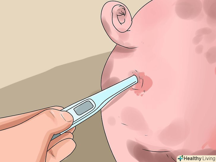 Виміряйте свині температуру. Температура до 38ºС – це нормальна температура у свині, а пневмонія на початковому рівні дає 39-40 ºС. [6] Температура у свині вимірюється ректально; виміряти температуру у поросят – це здійсненне завдання, але у випадку з дорослими свинями, які не мають постійного контакту з людиною – це досить небезпечне завдання. Дорослі свині дуже сильні і можуть завдати вам серйозних пошкоджень.