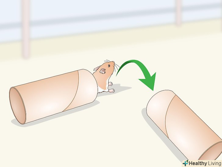 Включіть в смугу перешкод тунелі з картонних трубочок або інших циліндричних об'єктів. Хом'ячки люблять бігати по тунелях. Як тунелі можна використовувати картонні трубочки від туалетного паперу або паперових рушників, готові тунелі для гризунів або ж іграшкову пружинку з пластика. Розмістіть тунелі в проміжках між перешкодами для стрибків, які ви вже розставили раніше. [10]- Більшість хом'ячків здатне групуватися і протискуватися крізь тунелі, які спочатку можуть здатися занадто вузькими для них. Їм подобається це робити. Ідеальним стартовим варіантом будуть тунелі діаметром з картонну трубочку від туалетного паперу.