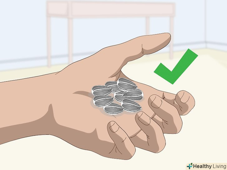 Приготуйте ласощі, яке подобається вашому хом'ячку. більшість хом'ячків відмінно мотивує їжа. Нерідко улюбленими ласощами є насіння соняшнику, але від них хом'ячок може розтовстіти, тому використовуйте їх помірно. Поекспериментуйте з різними видами частувань, щоб знайти серед них улюблені ласощі хом'ячка і зміцнити з ним зв'язок. [2]- Якщо хом'ячку сподобається ласощі, він швидко його з'їсть і явно буде шукати добавки. Якщо ж частування доведеться хом'ячку не до смаку, ймовірно, він його навіть не доїсть.