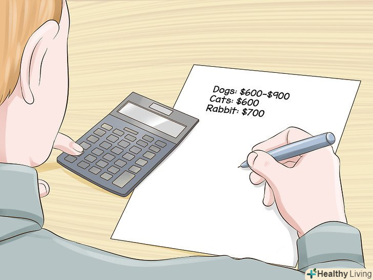- Не забудьте про постійні витрати по догляду за вихованцем. Ви повинні врахувати необхідність регулярного придбання корму і превентивного ветеринарного догляду (здійснення щеплень), а не тільки екстрені звернення до ветеринара. Важливо стежити за станом здоров'я вихованця, але часом це буває досить дорогим завданням.