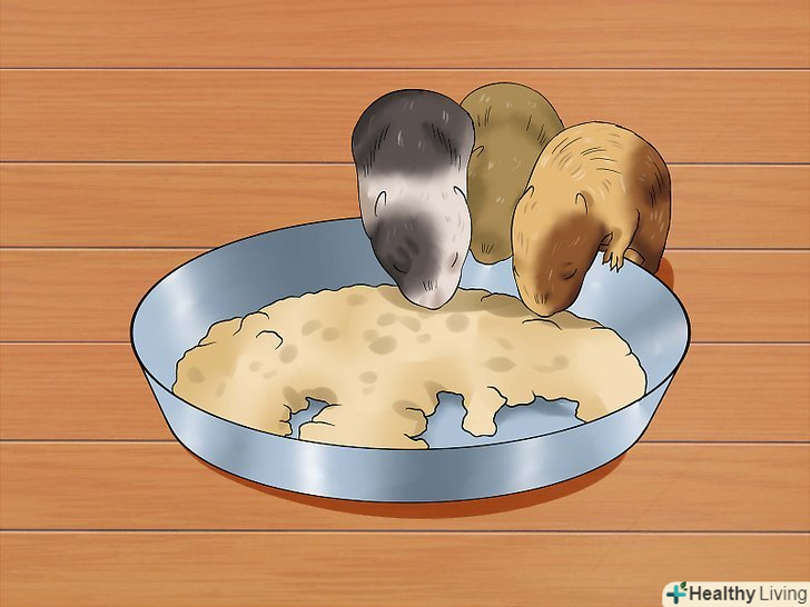 Під час вагітності годуєте самку живильним кормом. ви повинні бути впевнені в тому, що дієта хом'ячка є здоровою і повноцінною, щоб гарантувати появу здорових малюків. Годуйте самку тим кормом, який вона звикла вживати, так як раптова зміна раціону може призводити до розладу живота. Проте ідеальним варіантом дієти є гранульований корм для щурів або мишей, так як хом'ячок не зможе харчуватися вибірково, залишаючи неїстівними деякі здорові (але менш смачні) складові звичайного корму.- Молоко і сир в невеликій кількості забезпечать необхідний кальцій для росту приплоду, також вони будуть корисні самці і після пологів в період лактації. [7]