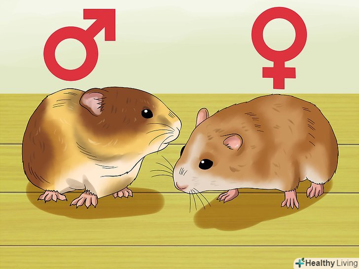 Визначте стать свого хом'ячка. цілком очевидно, що, як і у людей, у хом'ячків завагітніти може тільки особина жіночої статі. Більшість людей спочатку знають стать своїх хом'ячків, але про всяк випадок, якщо ви ще цього не знаєте, для отримання додаткової інформації та встановлення статевої приналежності свого вихованця прочитайте статтю «Як визначити стать хом'ячка» .- Безпечно підніміть хом'ячка за загривок (міцно тримайте його за ділянку рухомої шкіри трохи вище плечей, але без защипування) і обережно переверніть вихованця, щоб перевірити його підлогу. У самців близько хвоста є явно виражені яєчка, які надають їх заду досить об'ємний вигляд, тоді як у самок нічого такого немає, замість цього у них на животі є набагато більш помітні пари сосків.