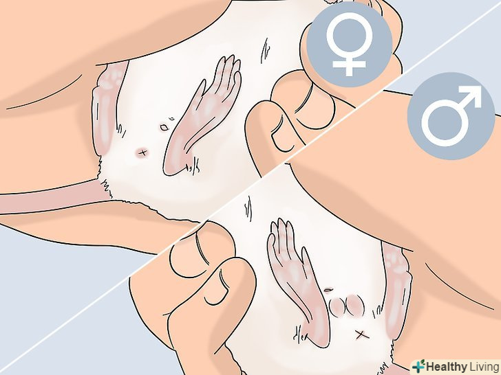 Визначте стать за величиною відстані між анусом і геніталіями. у самок область геніталій розташована помітно ближче до анального отвору. У дорослої самки відстань від ануса до вагіни зазвичай становить приблизно 6 мм.вагінальний отвір розташовується за уретрою, яка може виглядати як горбок. [4]- У самців геніталії розташовані помітно далі від анального отвору, ніж у самок.