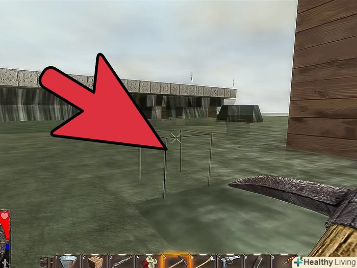 Зробіть огорожу з колючого дроту (Barbed Fence Wire).огорожу з колючого дроту можна створити за допомогою крафта, але її можна і знайти. Її часто використовують для зміцнення периметра або блокування проломів в стіні вночі.- Щоб зробити огорожу з колючого дроту, вам знадобляться 2 палиці (Sticks) і 1 колючий дріт (Barbed Wire). Колючий дріт можна отримати за допомогою крафта, об'єднавши 3 кованих заліза (Forging Iron); в результаті цієї дії у вас вийде 15 одиниць колючого дроту.