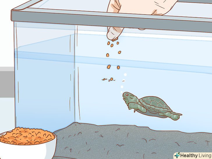 - Якщо у вас водна черепаха, кладіть їжу в воду. Водні черепахи не можуть проковтнути їжу, якщо вона не в воді. Через 5 хвилин зберіть сачком залишки їжі, щоб вода залишалася чистою. [14]
