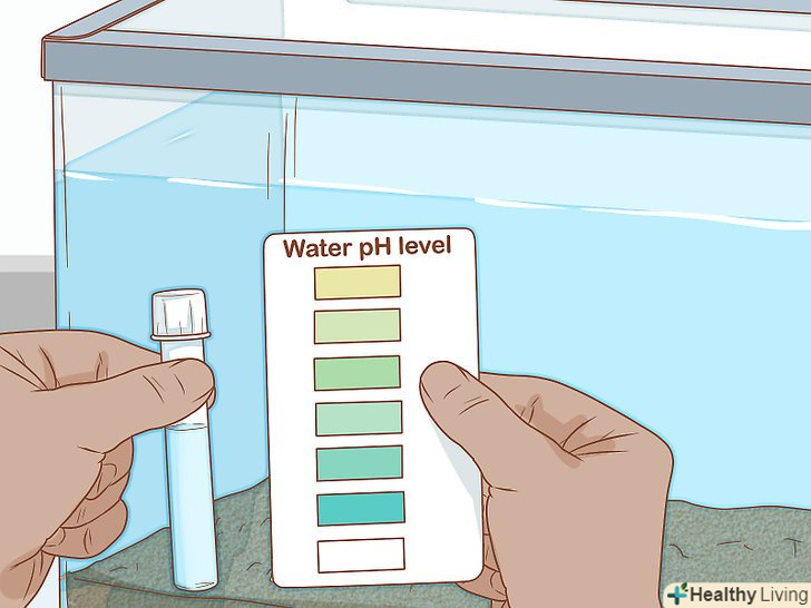ПеревірятиPH-рівень, а також рівень аміаку, нітритів і нітратів у воді кожні кілька днів. купіть спеціальний тест-набір в зоомагазині або в Інтернеті. Рівень pH повинен знаходитися в межах 6,0-8,0, тобто бути нейтральним. Аміаку в воді бути не повинно. Рівень нітритів повинен бути нижче 0,5 частин на мільйон, а нітратів — менше 40 частин на мільйон. [19]- Черепаха буде пити воду, тому важливо регулярно перевіряти склад води і стежити за її чистотою. Якщо ph-рівень виходить за рамки нормального, додайте у воду спеціальну речовину (його можна купити в зоомагазині). Якщо у воді підвищений рівень аміаку, нітратів або нітритів, замініть воду в акваріумі і купіть інший фільтр.