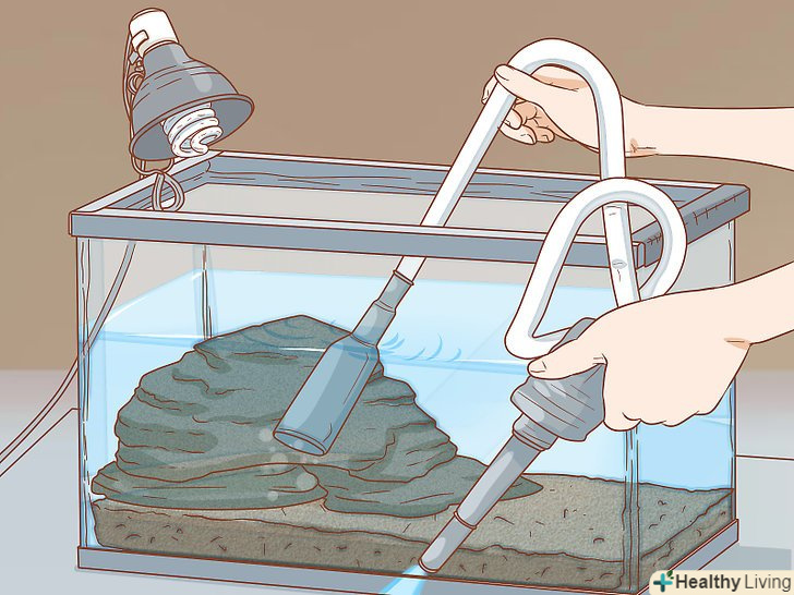 Збирайте фекалії сачком кожен день. щоб вода була максимально чистою, збирайте фекалії, залишки їжі та інше сміття щодня. Неодмінно мийте руки після того, як доторкнетеся до внутрішньої поверхні акваріума або візьмете черепаху на руки. [18]- Черепахи можуть бути переносниками сальмонели, що викликає блювоту і діарею.