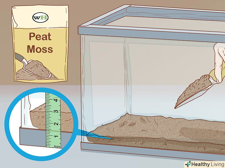 Покрийте дно акваріума мохом або грунтом. змішайте рівні частки дерев'яної стружки і моху або піску і землі. Покрийте отриманою сумішшю дно акваріума на 5-8 сантиметрів. [2]- Не використовуйте гравій. Черепаха може проковтнути дрібні камені і задихнутися.