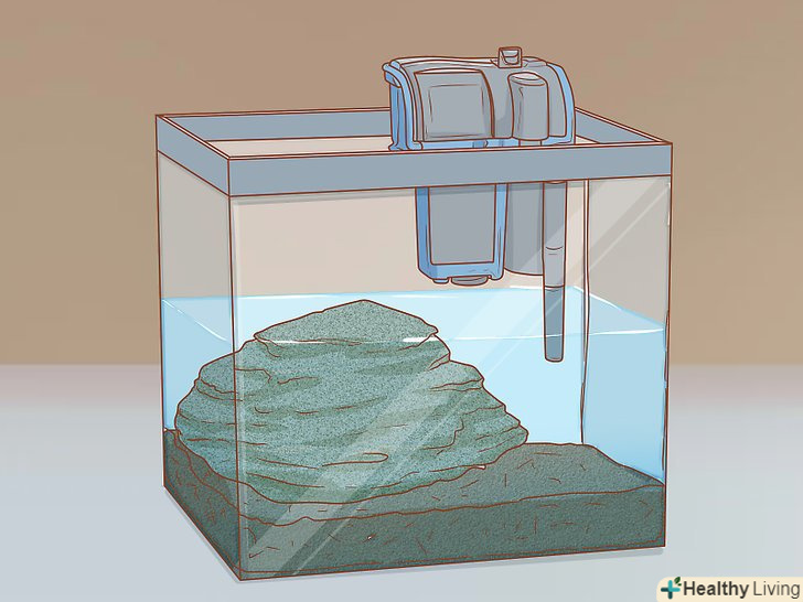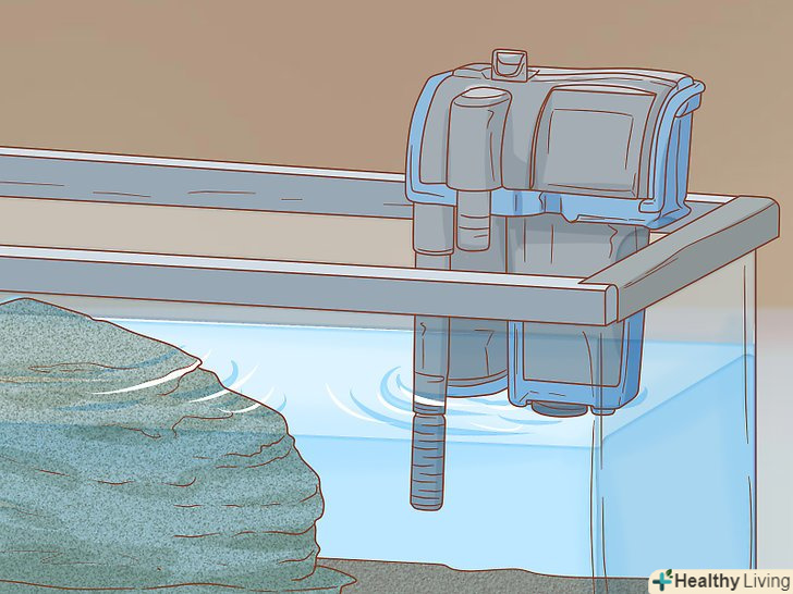 Встановіть фільтр для очищення води. купіть фільтр, який зможе очищати обсяг води, в два рази перевищує обсяг акваріума. Припустимо, у вас водна черепаха, і вона живе в акваріумі об'ємом 380 літрів, де половина заповнена водою. Оскільки в акваріумі приблизно 190 літрів води, купіть фільтр, розрахований на 380-570 літрів. [8]- Попросіть співробітника зоомагазину допомогти вам вибрати фільтр.