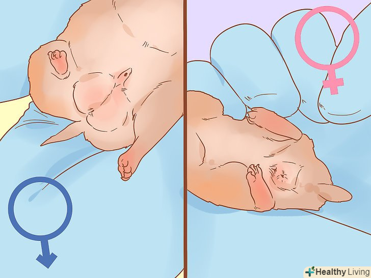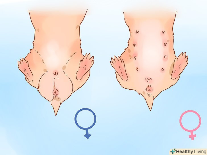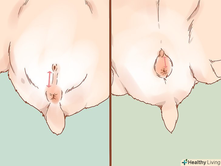 Знайдіть два отвори на нижній частині живота. зазвичай вони схожі на два маленьких рожевих кола і можуть бути злегка підняті по краях. Анус розташовується прямо під хвостиком, сечостатевий отвір — вище ануса і ближче до центру живота.