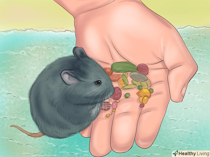 Використовуйте гранульований корм або корм у брикетах. зернові суміші дозволяють хом'ячкам харчуватися вибірково і вибирати те, що повкуснее, але зазвичай менш корисно. Забезпечте основну дієту гранульованим кормом або кормом в брикетах і використовуйте зернові суміші в якості додаткового корму. Обов'язково перевіряйте те, що хом'ячок добре поїв гранульований корм, перш ніж пропонувати йому добавку у вигляді зерен. [15]