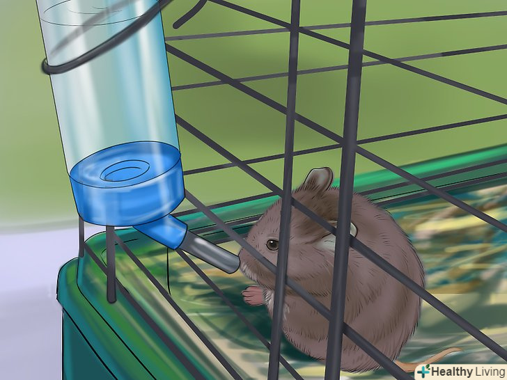 Забезпечте постійну наявність води. Хом'ячок п'є не дуже багато води, але коли у нього з'являється спрага, важливо, щоб вода завжди була доступна. Не ставте воду в мисці, так як в такому випадку вона швидко забрудниться, або хом'ячок просто її перекине. Замість цього використовуйте спеціальну настінну поїлку. Якщо можливо, міняйте воду в поїлці кожен день, щоб вона залишалася свіжою, або не рідше одного разу на три дні максимум. [14]