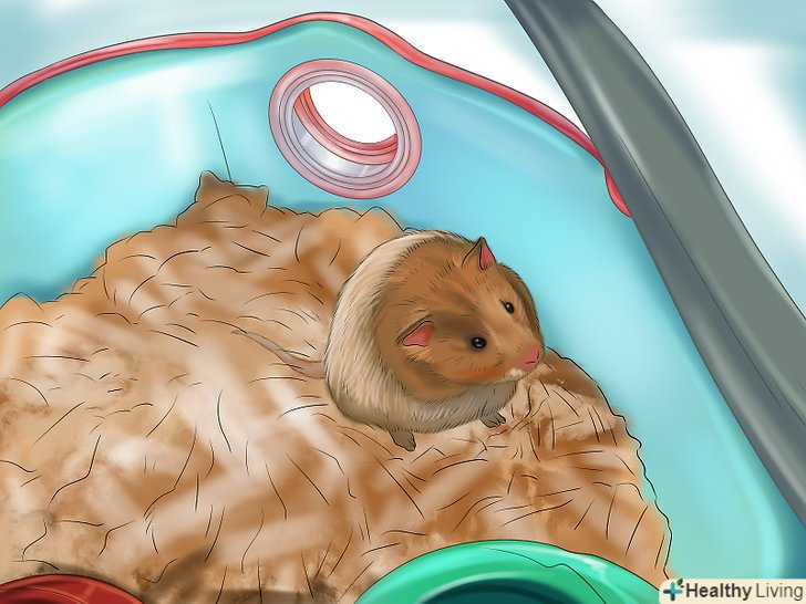 Забезпечте хом'ячка підстилкою. Дно клітини повинно бути засипано шаром підстилки товщиною близько 7,6 сантиметра. Соснові і кедрові тирса не підходять в якості підстилки для хом'ячків, так як можуть викликати багато проблем зі здоров'ям. Вони можуть містити шкідливі ефірні масла і приводити до проблем з респіраторною системою. Однак, осикові тирса не володіють шкідливими ефірними маслами і ідеально безпечні для використання в клітці у хом'ячка. Ніколи не використовуйте в якості підстилки вату. Це дуже небезпечно для вихованця, так як він не в змозі переварити вату при вживанні, крім того, волокна вати можуть намотуватися на лапки хом'ячка і перетискати кровообіг, що потенційно смертельно небезпечно для вашого вихованця. [11]