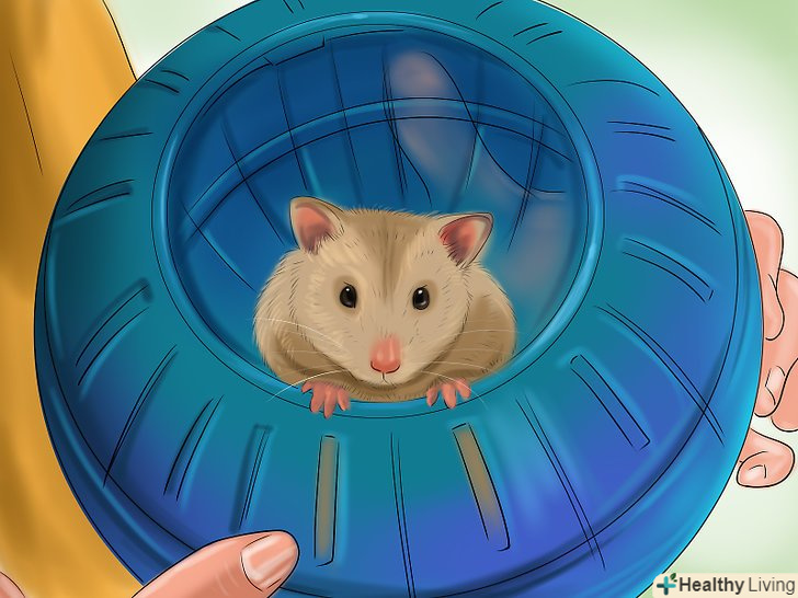 Придбайте підходяще для хом'ячка бігове колесо. Колеса, що йдуть в комплекті з клітинами, зазвичай занадто малі і не підходять для спини хом'ячка. При використанні занадто маленького бігового колеса спина хом'ячка згинається вгору. Для карликових хом'ячків придбайте бігове колесо діаметром не менше 20 сантиметрів, а для сирійського хом'ячка – не менше 28 сантиметрів. Не бійтеся придбати колесо більшого розміру. [24]