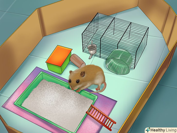 Залиште хом'ячка на самоті для дослідження нового будинку. коли вперше принесете хом'ячка додому, посадіть його в клітку зі свіжим кормом і водою і залиште одного. Прикрийте клітку тонкою тканиною, щоб вихованець без тривоги міг досліджувати нове житло. Переконайтеся в тому, що у нього є достатньо корму, води та іграшок, щоб бути зайнятим протягом декількох днів, так як вам не слід турбувати його в цей період. Якщо в будинку присутні діти, друзі або в гості, поставте їх до відома про те, що їм також не слід турбувати хом'ячка. [19]
