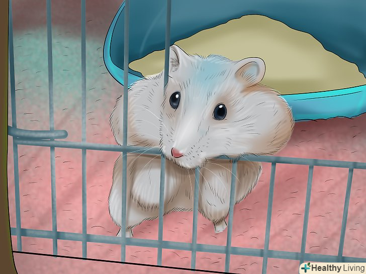 Виберіть здорового хом'ячка. у здорово хом'ячка повинні бути чисті вуха, чиста і суха попа, невеликий округлий животик, не повинно бути лисин або пухлин (за винятком ділянок пахучих залоз на їх стегнах, які можна переплутати з порізами або зі струпами), повинні бути чисті яскраві очі і здорові зуби, які не повинні бути переросли або загинаються догори. [3]- Якщо у хом'ячка спостерігається мокрий хутро навколо попи, будьте особливо обережні; це ознака наявності "мокрого хвоста" – бактеріального захворювання, яке швидко поширюється через контакт з іншими хом'ячками. Хутро повинен бути сухим і чистим. Для лікування мокрого хвоста існують спеціальні антибіотики, але якщо ви зараз тільки вибирайте свого хом'ячка, постарайтеся знайти того, який буде здоровий. [4]