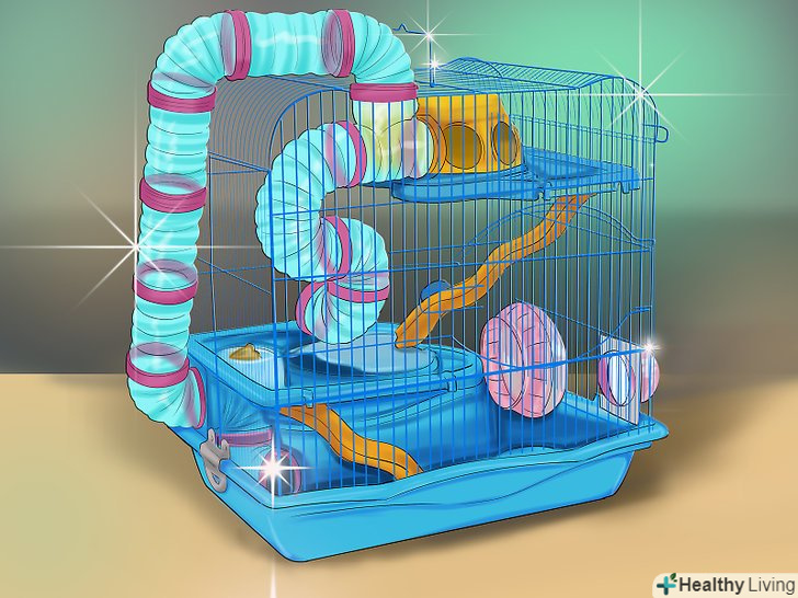 Виберіть правильну клітку. Ваш хом'ячок найкраще буде себе почувати в клітці площею 0,24 квадратних метра або зі сторонами 60 на 40 сантиметрів. Відмінним будинком для хом'ячка може стати скляний акваріум, якщо він забезпечує мінімально необхідний простір дна. Недоліком акваріума служить погана вентиляція, тому кришка акваріума обов'язково повинна бути виконана з металевої решітки, щоб хоч якось пропускати повітря. Альтернативою акваріуму служить застосування клітини з монолітним піддоном і металевими гратами вгорі, яка забезпечує хорошу природну вентиляцію. Переконайтеся в тому, що розташували клітку не під прямими сонячними променями, так як ваш хом'ячок може перегрітися через інтенсивного сонячного світла, особливо при утриманні в акваріумі. Купівля акваріума для хом'ячка може дорого вам обійтися, якщо тільки ви не купуєте вживаний Акваріум. Забезпечують ж хорошу вентиляцію металеві клітини можна придбати порівняно недорого.