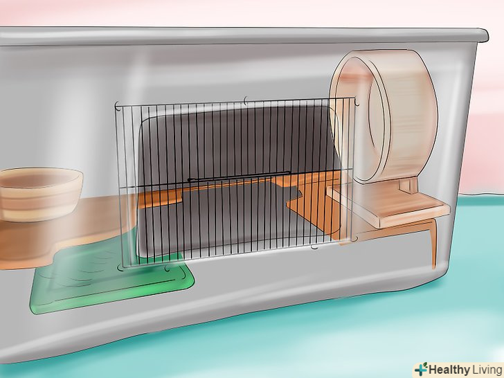 Поставте клітку в безпечне місце. переконайтеся, що в цьому місці забезпечена хороша вентиляція. Не ставте клітку біля сонячних вікон. Підберіть для неї Тихе місце, до якого не доберуться інші ваші домашні тварини, наприклад, собаки або кішки. Це знизить стрес у Вашого хом'ячка. Ні в якому разі не можна дозволяти вашим кішкам або собакам спілкуватися з хом'ячком. [8]