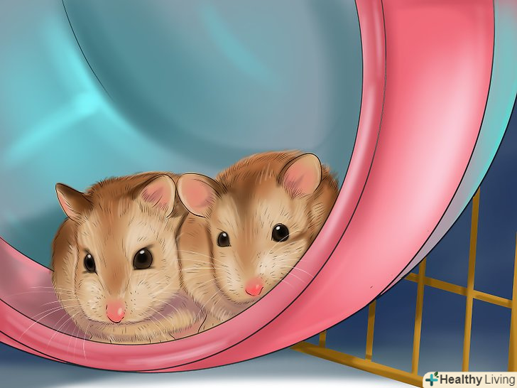 Зрозумійте територіальні інстинкти хом'ячків. утримуйте сирійських хом'ячків тільки поодинці. Вони починають проявляти територіальну поведінку вже у віці 5-8 тижнів і будуть битися (найчастіше до смерті) з іншими хом'ячками, якщо їх посадити разом. Багато карликові хом'ячки можуть розміщуватися спільно, якщо вони були належним чином познайомлені ще в ранньому віці.- Три види карликових хом'ячків (Російські хом'ячки Кемпбелла, зимові білі хом'ячки і хом'ячки Роборовського) можуть жити поодинці або парами, якщо тварини були належним чином познайомлені. Чи не садіть в пару хом'ячків різних видів. Різностатеві пари хом'ячків для розмноження не повинні постійно міститися спільно, так як тварини можуть почати битися між собою і завдати один одному шкоди. [10]