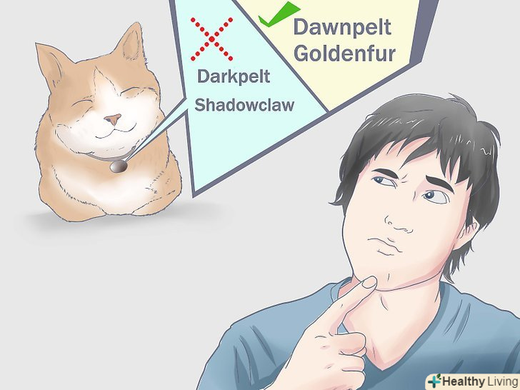 Дізнайтеся особисті якості вашого кота. якщо ваш кіт чорного або темного кольору, не давайте йому ім'я Кладфюр. Йому більше підійдуть Штормклауд або Рейвенфізер. Назвіть свого кота ім'ям, яке описувало б його. brgt;