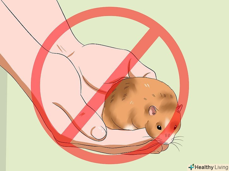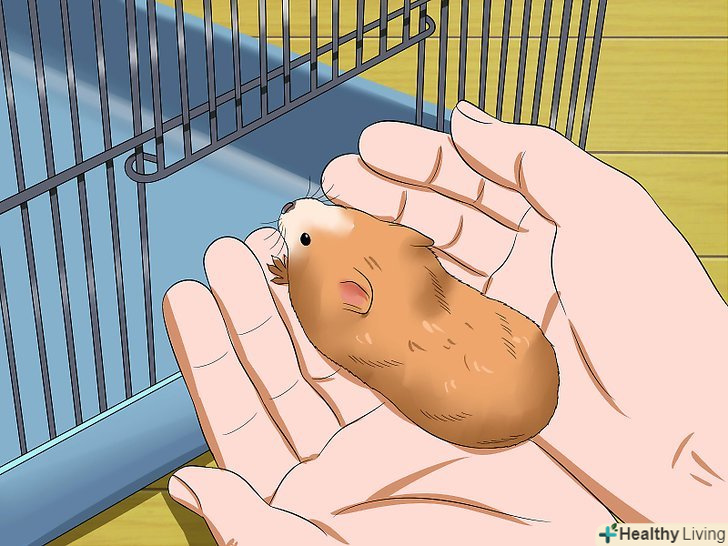 Слідкуйте за тим, щоб хом'ячок не впав. коли берете хом'ячка в руки, не дозволяйте йому впасти. У хом'ячків поганий зір і немає сприйняття висоти, [35] тому ваш вихованець зовсім не розуміє, наскільки високо він знаходиться над підлогою. Крім того, хом'ячок може травмуватися, якщо чогось злякається і вирішить зістрибнути з ваших рук, коли ви вже виймете його з клітки.