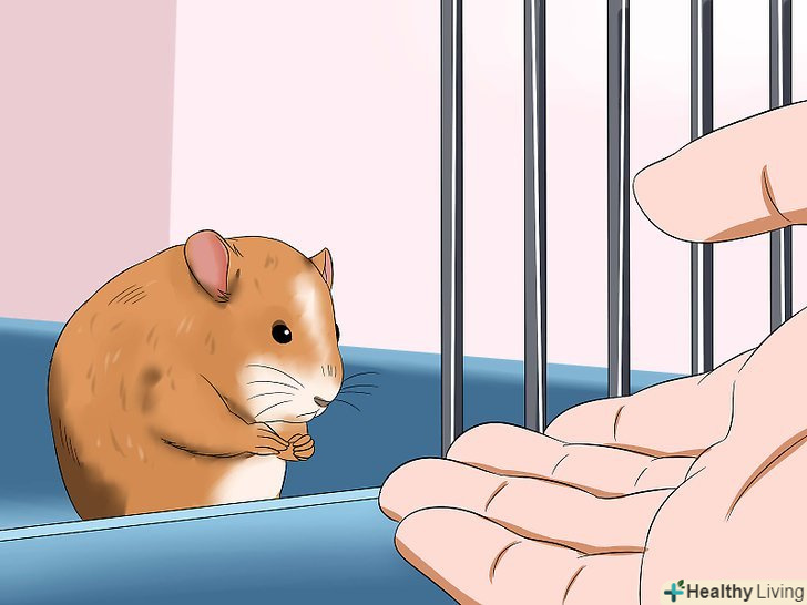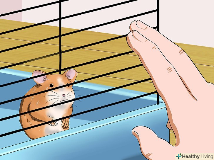 Привчіть хом'ячка до рук. Хом'ячок почне довіряти вам, коли зрозуміє, що ваші руки не заподіють йому ніякої шкоди. Повільно опустіть чисту руку на дно клітки з хом'ячком. Дозвольте йому нюхати її, щоб вивчити. [20]- Не дивуйтеся, якщо хом'ячок втече і сховається, коли ваша рука опиниться у нього в клітці. З його точки зору (як об'єкт полювання хижаків), ваша рука може нагадувати велику птицю, що пікірує вниз, щоб схопити звірка. [21]